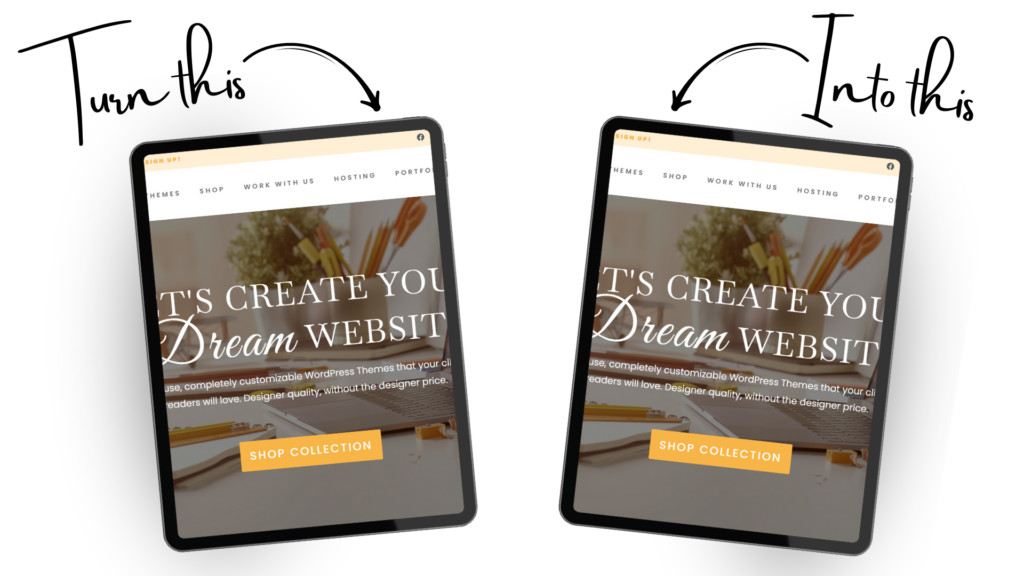 Our WordPress Themes are user friendly with no code knowledge needed. Everything is done in a live page editor, drag-n-drop style. Every detail is fully customizable by you, ie: fonts, colors, images, backgrounds, even your navigation styling. You can also count on each theme being optimized for Core Web Vitals, SEO & fast loading times.